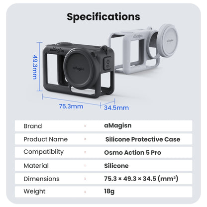 For DJI Osmo Action 5 Pro aMagisn Silicone Protective Case with Lanyard and Lens Cap(Light Gray)